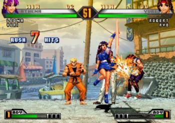 Si l’épisode 1994 jouissait d’une historiette convenue, ce sont surtout les trois opus suivants - désignés conjointement sous le nom de saga d’Orochi - qui enrichissent le background d’une saga à l’origine collégiale (puisqu’elle intègre au départ des personnages issus de Fatal Fury, Art of Fighting, Samurai Shodown ou plus tard Metal Slug, entre autres). En 1998, SNK fait marche arrière : le nouveau volet se passe d’une quelconque scénario et se désigne lui-même comme un Dream Match, quelque part une quintescence de ce que la série peut offrir.